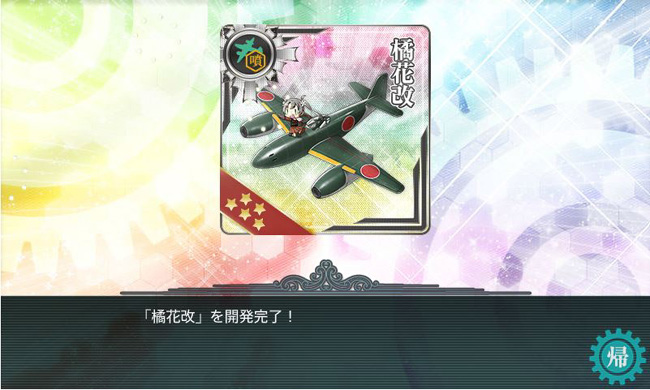 2回目のクリアでネ式エンジンを入手。長い道のりでした。この新型航空機設計図×2とエンジンを使い、更に紫電改二を3機消費して開発を実行すると・・・