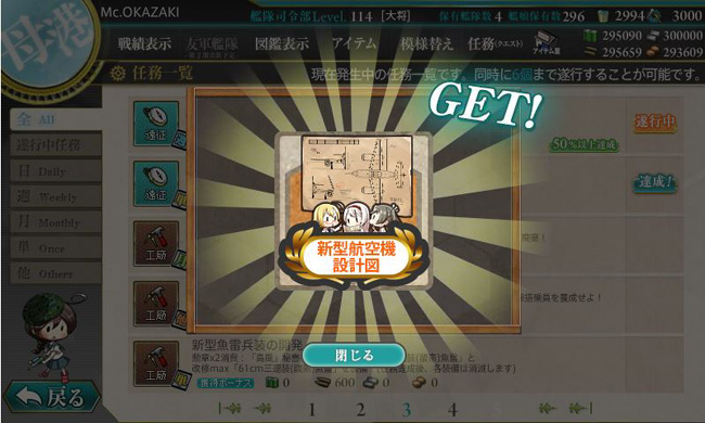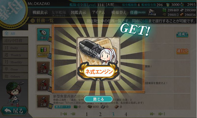 さて、今月新たに実装された新型噴式エンジン搭載機の開発任務。潜水艦による48時間+2時間任務を2回こなす必要があり、何気に大変な任務です。