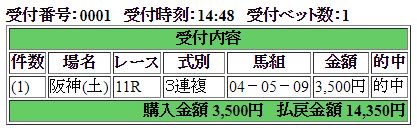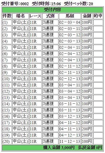 うーん、さすがに10番人気のキングハートまでは手が出せなんだ・・・。ダイメイフジも3着は確保したため、馬券は大ハズレ。まー、難しいよねー、このレースは。