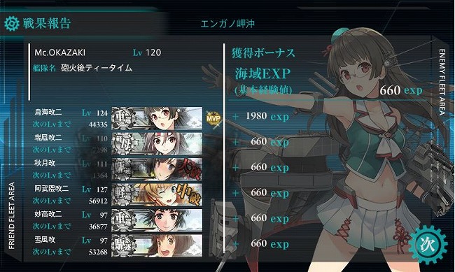 今回のイベントのMVPは間違いなく瑞鳳ですね。E-4、E-6、そしてE-7と各所で大活躍でした。次いで瑞鶴・那智・足柄・金剛・榛名・武蔵辺りですかね。