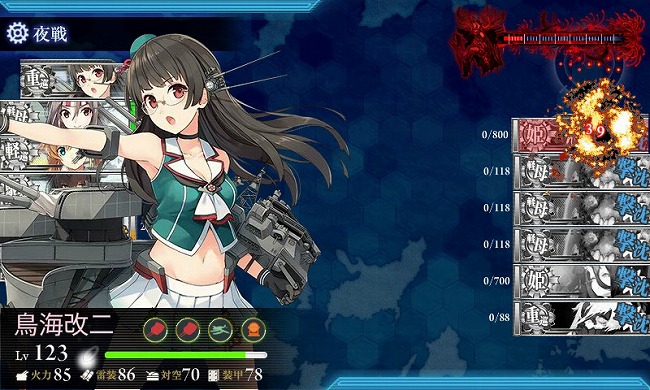 しかしさすがに姫6隻編成の攻撃は半端無いです。時にはこんな状態で艦隊が戻って来る事も・・・。これ、修理代いくら掛かるんだ?(遠い目