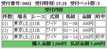 という訳で馬券はワイドにしておけば・・・の2-3着。例え配当が低くても、当てる事の方が大事!これが今回の教訓です。