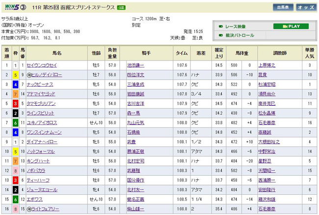 函館スプリントステークス(函館芝1200m、GV)