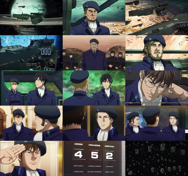 ビュコックはロボスに意見具申を申し立てるも、通信に出て来たのはフォーク。撤退を主張するビュコックに対し、撤退など思いも寄らない、と述べるフォーク・・・しかし、ここでビュコックがフォークに対して怒りを爆発させ、出来ない事ばかり言ってないで、前線に出て来て自分でやってみろ!と痛烈な皮肉を浴びせると、奇声を発しながらいきなりフォークが卒倒してしまい・・・。